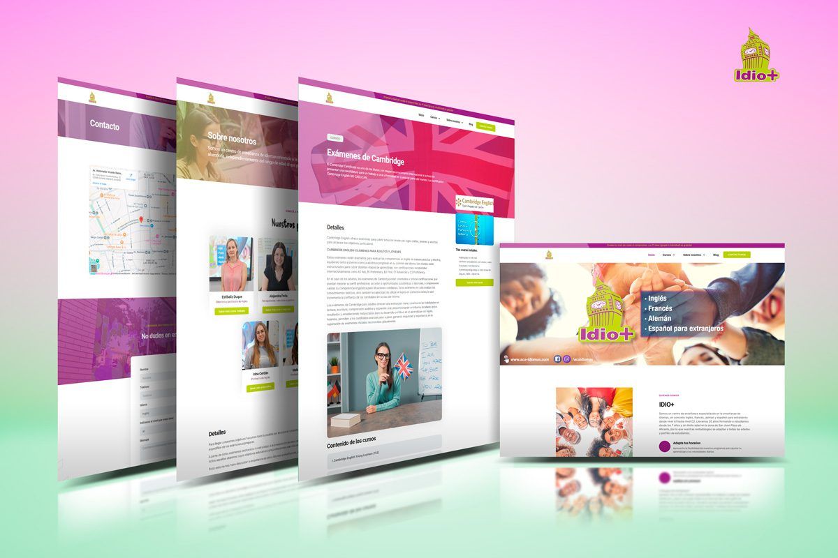 - Desarrollo de páginas web: Diseñamos y maquetamos páginas como la de Idio+, priorizando funcionalidad y estética.